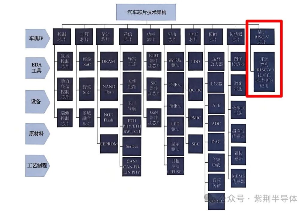 在自主可控、安全可靠的计算技术需求推动下,我国对RISC-V技术的研究热度持续攀升,已取得阶段性进展。作为开放标准的指令集架构,RISC-V 凭借独特战略价值,国内基于其内核的研究已初具规模,覆盖中低端芯片IP需求,数十款相关芯片实现量产并应用于物联网场景。汽车领域也成为 RISC-V 技术落地的关键战场。面对生态建设的迫切需求,多家车企与芯片设计企业纷纷联手布局车规芯片研发,持续推动 RISC-V 车规芯片生态发展,长城汽车与紫荆半导体合作案例涌现,相关产品逐步落地。